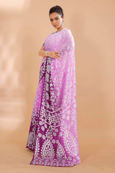 Jashiyaa Garden Vareli Women Viscose Brasso Floral Print Saree With Unstitched Blouse Piece Purple Magenta